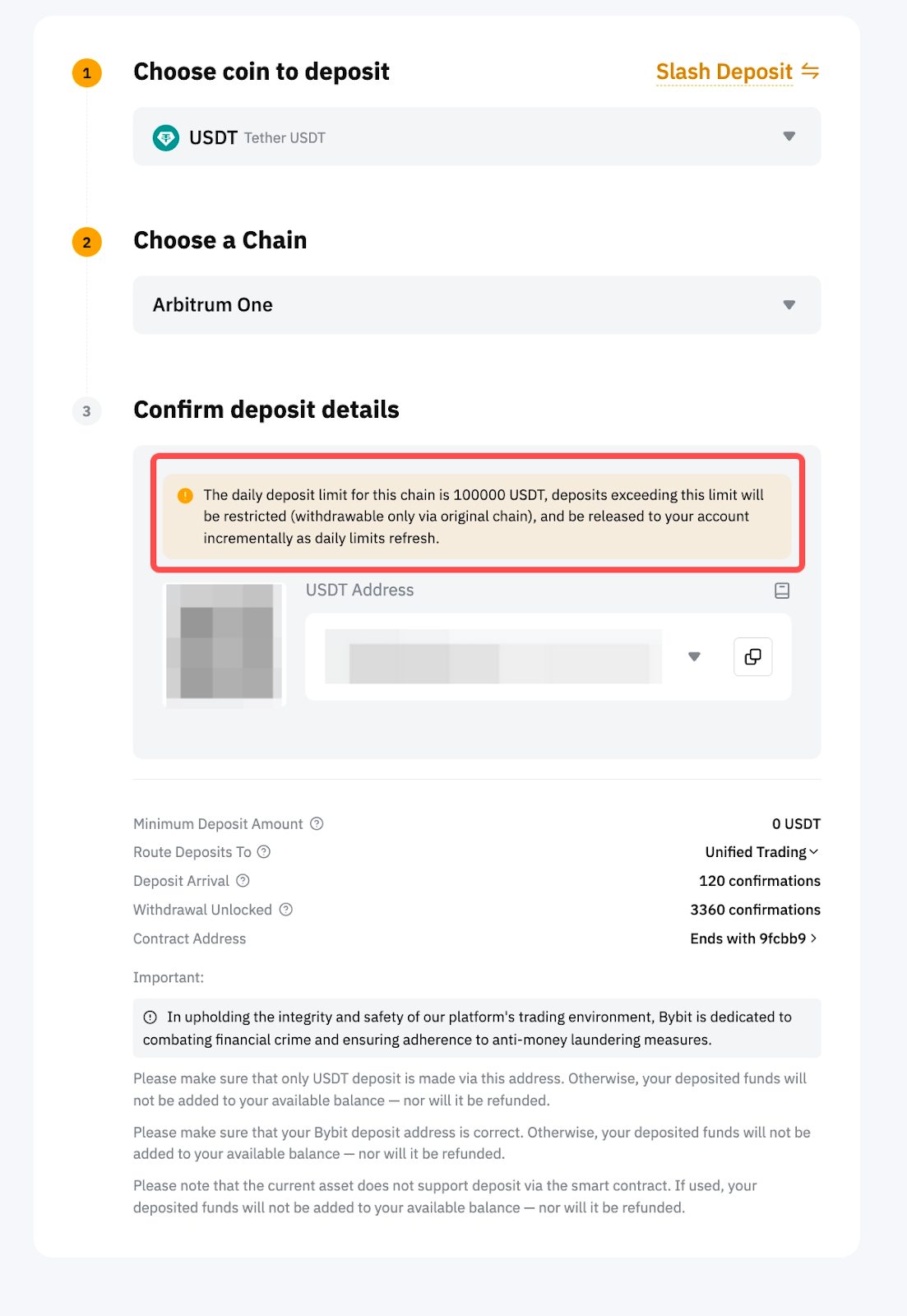 يرجى ملاحظة أن الإيداعات بعملات مختلفة بسلاسل مختلفة قد يكون لها حدود إيداع مختلفة.