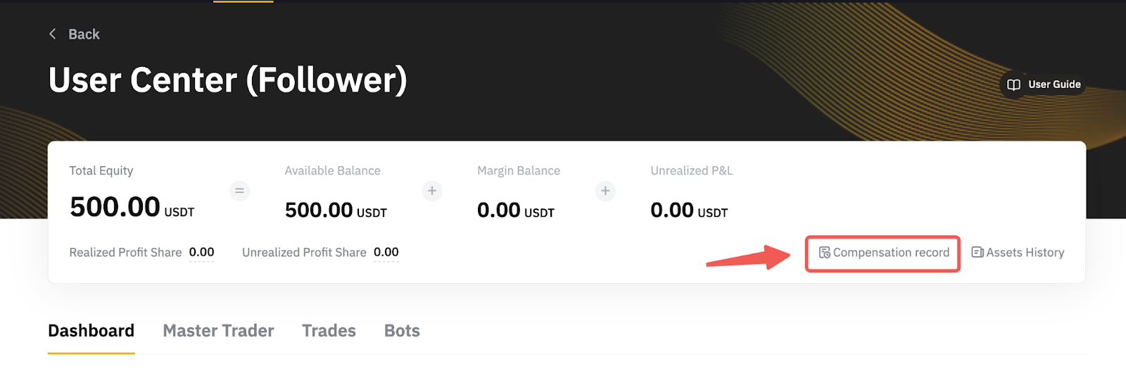 - إذا كنت مؤهلاً للتعويض عن الخسائر، سيتم منح تعويض يصل إلى 100 USDT في شكل مكافأة نسخ التداول وسيتم توزيعها إلى مركز المكافآت خلال 3 أيام بعد حدوث خسائرك.