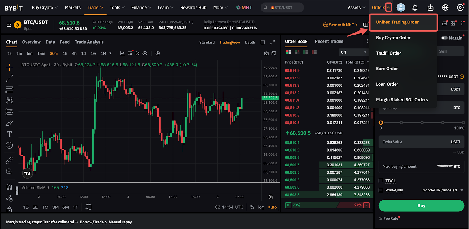 على موقع Bybit، يرجى النقر على الطلبات → طلب التداول الموحد لعرض تاريخ الطلبات الخاصة بك.