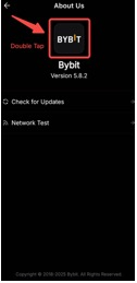 الخطوة 5: للتحقق من مزيد من المعلومات حول إصدار التطبيق، يمكنك النقر المزدوج على شعار Bybit وستشاهد المزيد من المعلومات حول التطبيق.
