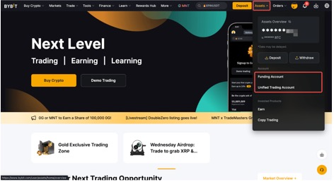 الخطوة 1: انقر على الأصول حساب التمويل أو حساب التداول الموحد لدخول الصفحة.