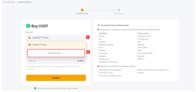 يمكنك عرض وإدارة بطاقتك المرتبطة في مركز مستخدم العملات النقدية → تقديم مواد التداول → الشراء بنقرة واحدة.