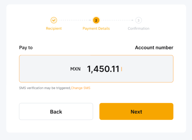 الخطوة 2: أدخل معلومات حساب البنك للمستلم. يرجى الملاحظة أنه بالنسبة لتحويلات SPEI، سيتم طلب رقم حساب البنك ورمز البنك (أول 3 أرقام من رقم Cuenta Clabe).