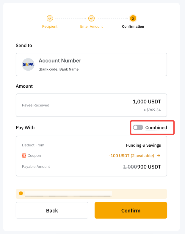 الخطوة 4: قم بمراجعة التفاصيل بعناية قبل النقر على تأكيد للمتابعة بعملية الدفع. يمكنك اختيار الدفع فقط بواسطة حساب التمويل، أو بحسابات المجموعة.
