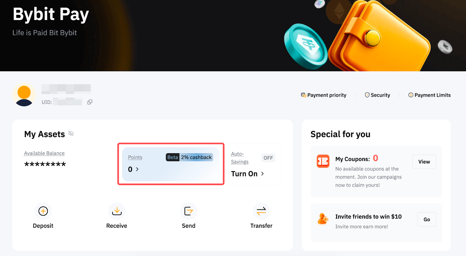 الخطوة 1: انطلق إلى My BybitPay وانقر على عرض المكافآت تحت النقاط.