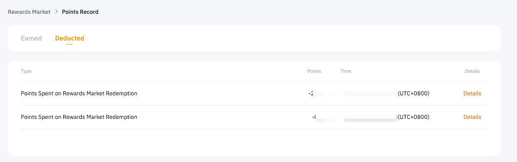 انقر على رمز السجلات في صفحة سوق المكافآت. يمكنك عرض النقاط المكتسبة والمخصومة من خلال التبديل بين علامات التبويب على صفحة سجل النقاط .