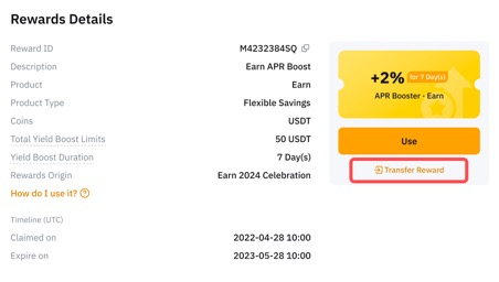 الخطوة 2: اختر المكافأة لعرض تفاصيلها وما إذا كانت تدعم النقل. يمكنك النقر على نقل المكافأة إذا كانت المكافأة قابلة للنقل.