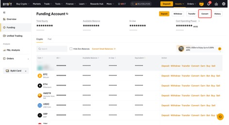 Bybit Convert هو أداة بسيطة لشراء أو بيع العملات الرقمية في بضع نقرات، بدون رسوم تداول تقليدية. يوفر أوضاع فورية وحدية، مما يسمح للمستخدمين بتحويل الأصول إلى أي عملة رقمية مدعومة في حساب التمويل و/أو حساب التداول الموحد لدينا.