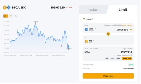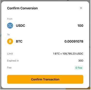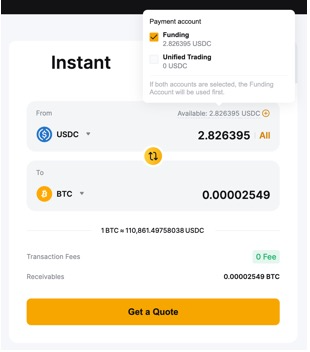 ● الوضع الفوري مدعوم في كل من حساب التمويل وحساب التداول الموحد، بينما وضع الحد متاح فقط عبر حساب التمويل. يرجى التأكد من أن أموالك موجودة في الحساب الصحيح قبل المتابعة بعملية التحويل.