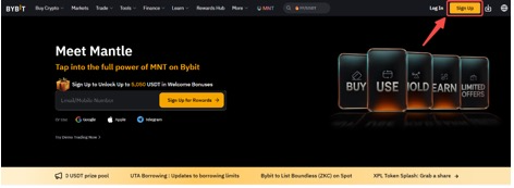 الخطوة 1: على الصفحة الرئيسية لموقع Bybit، انقر على تسجيل في الزاوية اليمنى العليا للوصول إلى صفحة التسجيل.