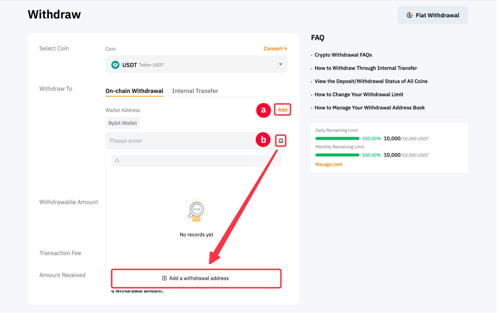 - أضف عنوان محفظة سحب جديد إلى دفتر عناوين محفظة السحب Bybit.