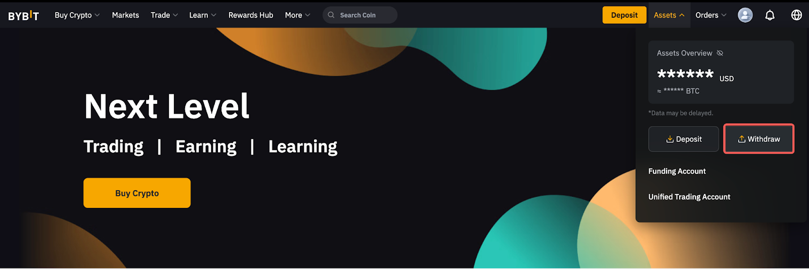 — يدعم Bybit عمليات سحب العملات المدرجة في صفحة أصول التمويل باستخدام زر السحب المتاح.