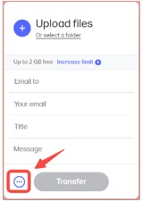 الخطوة 1: اذهب إلى https://wetransfer.com/، وانقر على أيقونة الثلاث نقاط الموجودة على يسار زر إرسال.