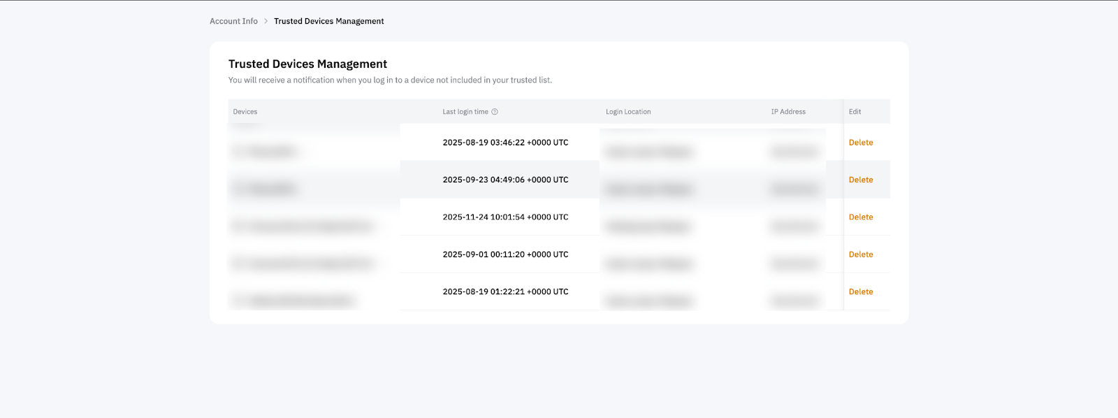 Managing your Trusted Devices is an important step in keeping your Bybit Account secure. By regularly reviewing and updating your device list, you can ensure that only devices you recognise are allowed to access your account.