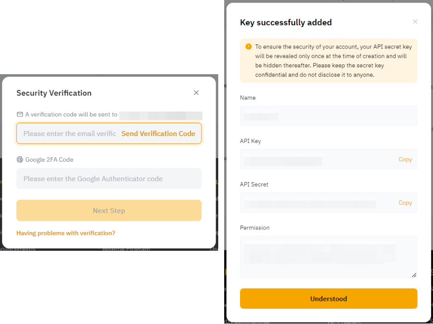 — For the safety of your assets, your API secret key will only appear once upon creation, and hidden afterwards. Please keep your API keys securely.