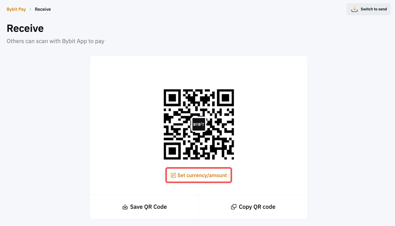 Bybit Payでは、他のBybit Payユーザーや加盟店と取引を行うことができます。現在、アプリを使用したBybit QR Payと、アプリとウェブサイトを使用した社内送金の2種類の受取方法に対応しています。