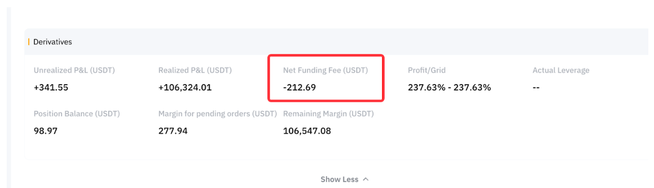 A negative amount on the Funding Fee indicates that you are receiving (earning) the funding fee from the previous funding interval. Conversely, if you see a positive amount, it means that you are paying the funding fee, which results in a reduction of your remaining margin within your bot.
