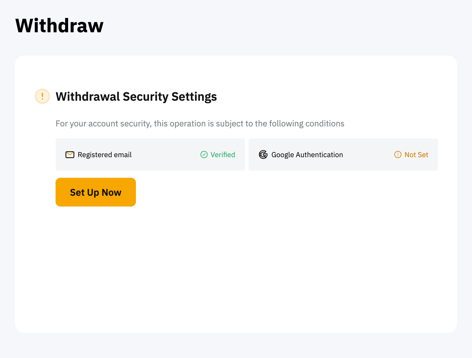 Você pode acessar e modificar suas configurações de saque na página Gerenciamento de  carteiras clicando no botão Configurar. Você será redirecionado para as funções de segurança de saque na página Conta, onde poderá alternar as opções que deseja ativar ou desativar.
