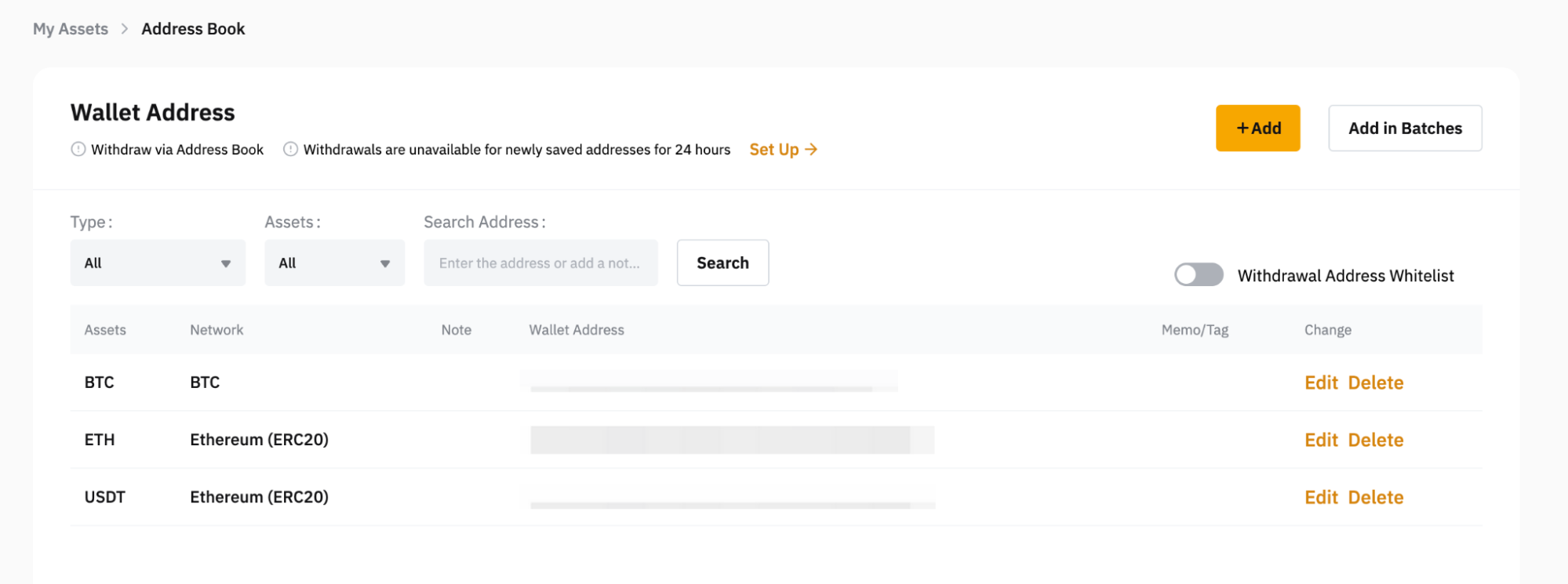 Para obter mais informações sobre como gerenciar seu livro de endereços de saque, consulte este artigo.