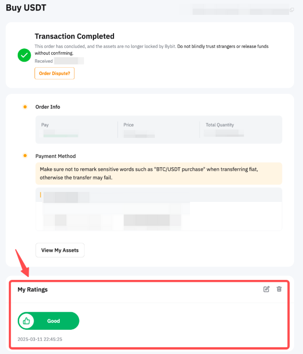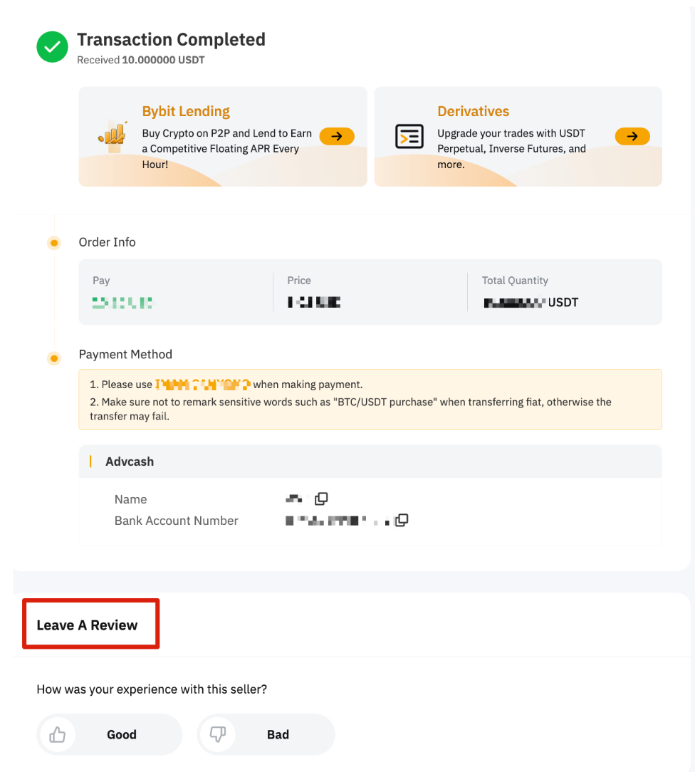 - Оставление отзыва после завершения P2P-ордера является добровольным.