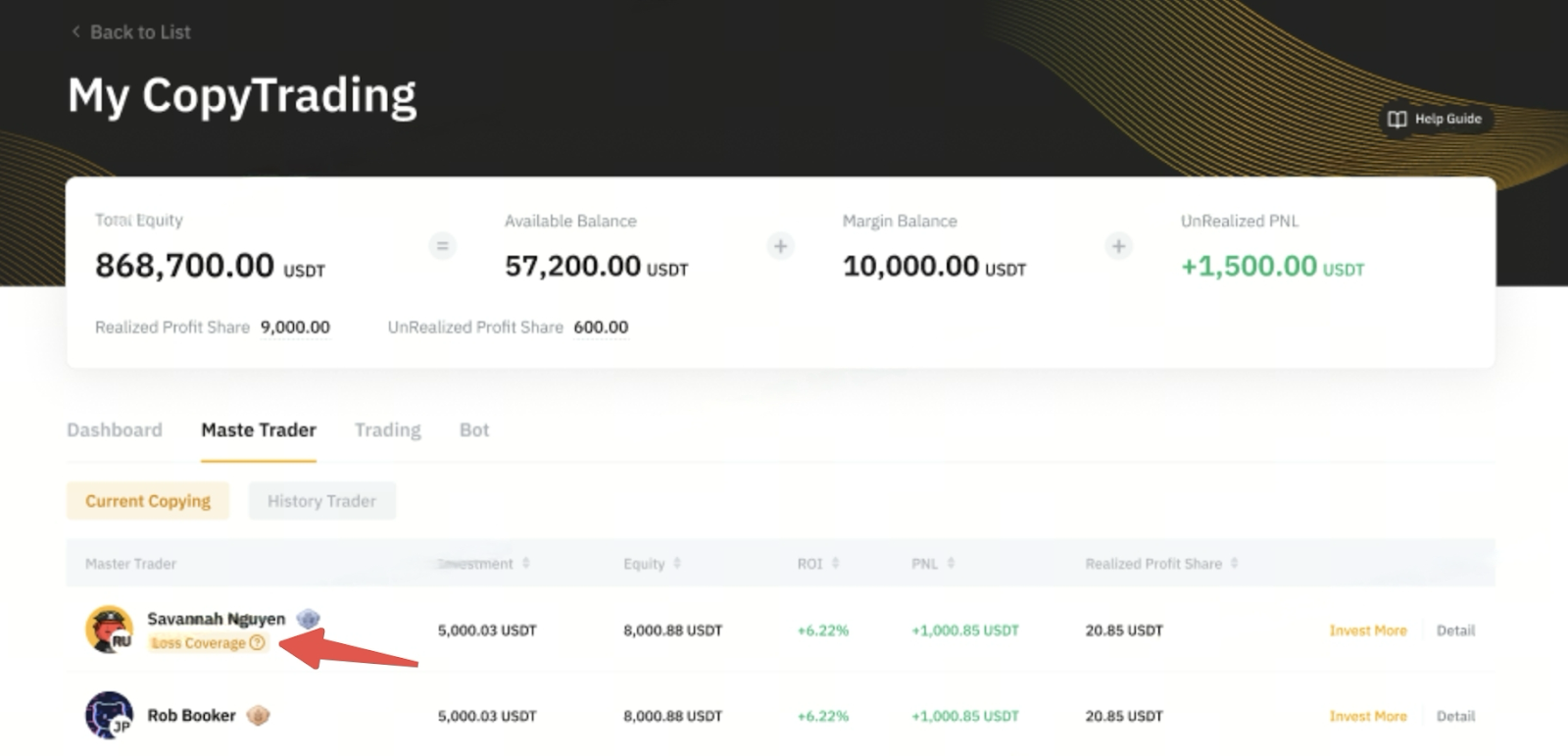 - Він надає до 100 USDT бонус для Копітрейдингу як компенсацію збитків, понесених за відповідними ордерами Копітрейдингу.