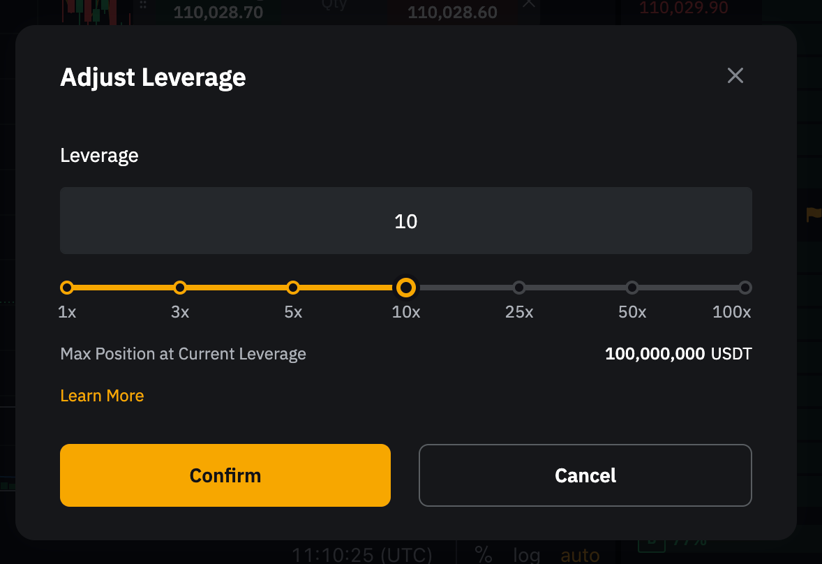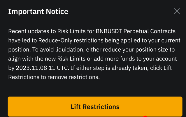 — Якщо у вас немає позицій або активних ордерів, а наявне кредитне плече, що використовується, вище за щойно відкориговане дозволене максимально кредитне плече, ви можете зіткнутися з повідомленням про помилку, що обмежує розміщення ордера. Налаштуйте кредитне плече вручну, щоб узгодити з відкоригованим дозволеним максимальним кредитним плечем.