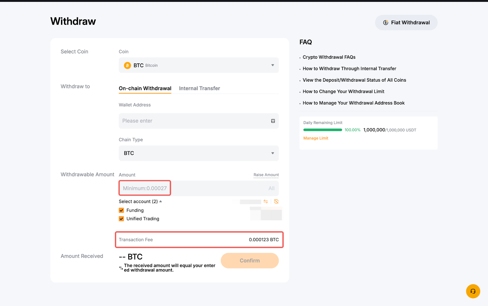 Phí Rút sẽ được tính cho giao dịch rút tiền tùy thuộc vào loại coin và chuỗi khác nhau được chọn. Bạn có thể xem số tiền rút tối thiểu và phí rút tiền nêu trên cửa sổ rút tiền. Xin lưu ý rằng phí rút tiền luôn cố định bất kể số tiền rút.