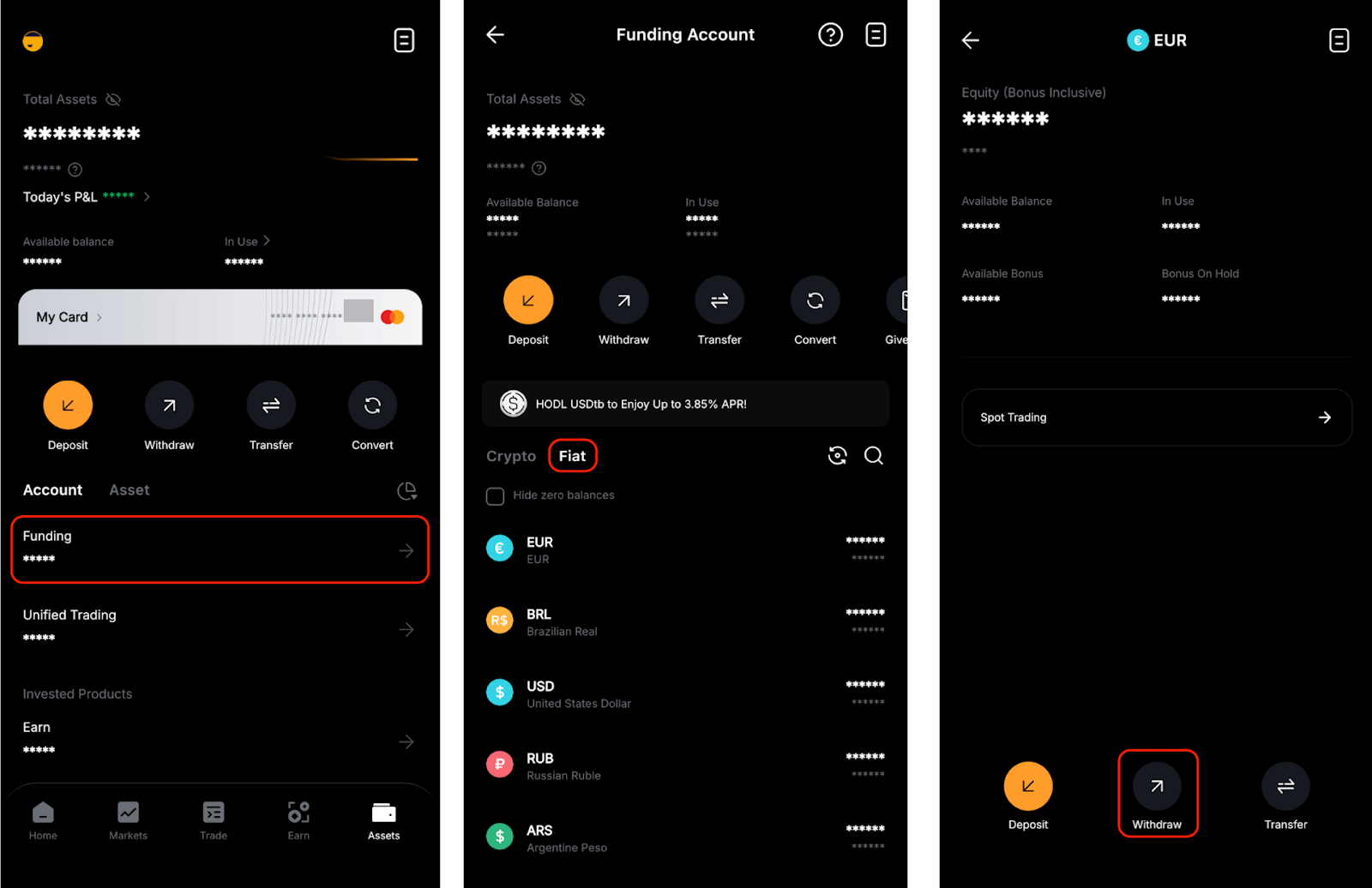 Trên Bybit App, vui lòng truy cập trang Tài Sản và nhấn Funding → Fiat. Sau đó, nhấn vào loại tiền Fiat và tham khảo các khoản phí liên quan cho từng phương thức thanh toán.