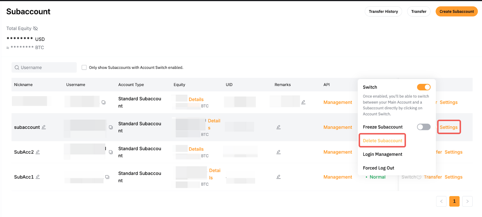 Đối với hành động này, bạn sẽ cần phải đi đến trang Subaccount trang thông qua Tài khoản chính của bạn. Sau đó, nhấp nút Cài đặt của tài khoản phụ tiêu chuẩn có liên quan và nhấp biểu tượng Bỏ liên kết trong cửa sổ bật lên Quản lý đăng nhập. Để có hướng dẫn chi tiết hơn, vui lòng tham khảo bài viết này.