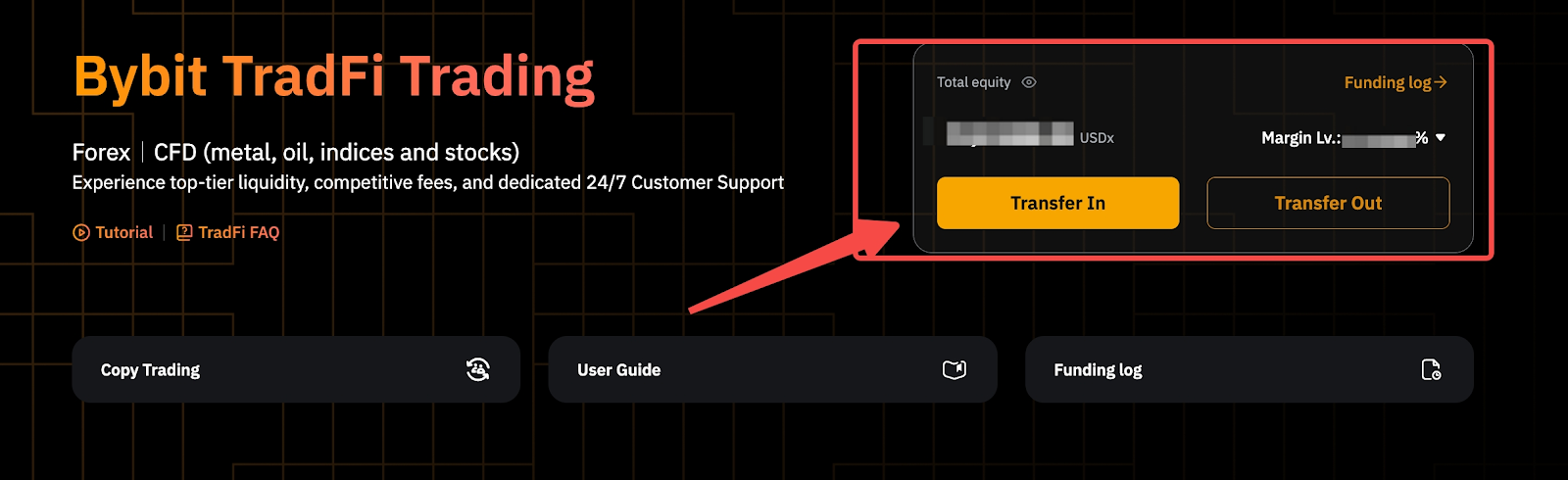 Bước 2: Trên trang Giao dịch Bybit TradFi, nhấp vào nút Chuyển tiền để chuyển tiền vào tài khoản TradFi của bạn.