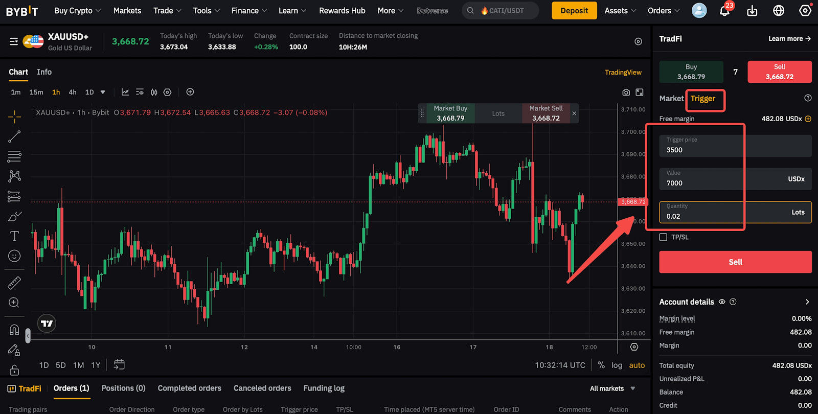 Nhà Giao dịch cần nhập cả Giá Kích hoạt và Giá trị hoặc Số lượng để đặt lệnh.