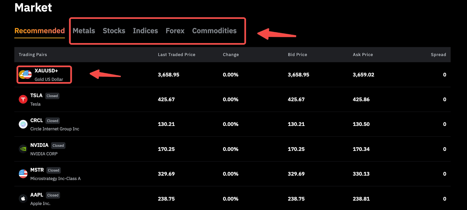 Bước 3: Chọn biểu tượng giao dịch ưa thích của bạn để được chuyển hướng đến trang giao dịch và bắt đầu giao dịch.
