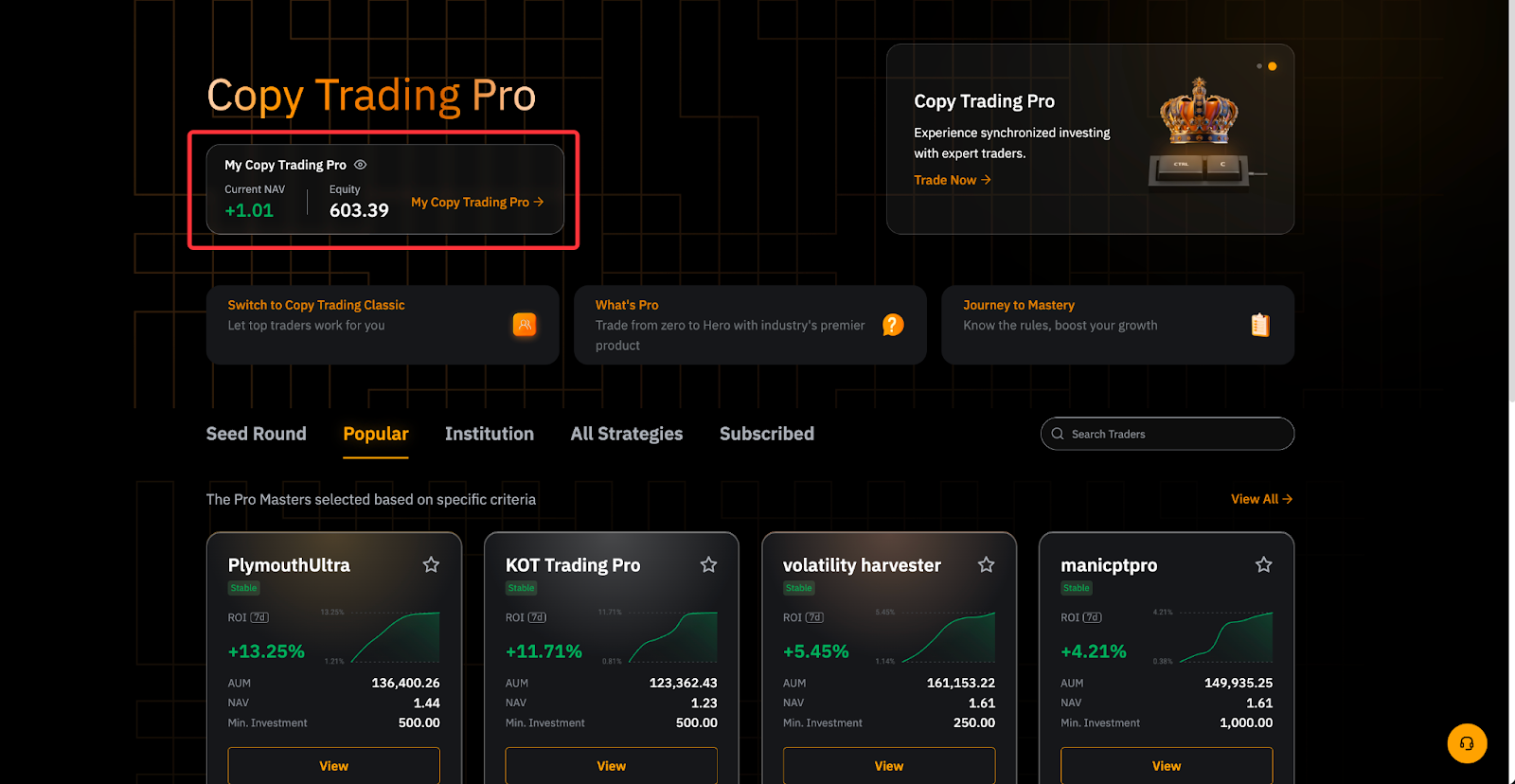 Để truy cập Trung Tâm Nhà Giao Dịch Pro, hãy chuyển sang Tài Khoản Phụ Nhà Giao Dịch Pro → Sao Chép Giao Dịch Pro và nhấp vào Thẻ Sao Chép Giao Dịch Pro Của Tôi.