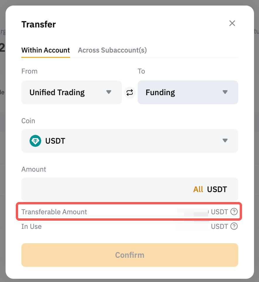 - Nhà giao dịch có thể chuyển tiền vào Tài Khoản Giao Dịch Hợp Nhất để thực hiện Giao Dịch Giao Ngay, Giao Dịch Ký Quỹ, USDT Vĩnh Viễn, USDC Vĩnh Viễn và Tương Lai, Vĩnh Viễn Nghịch Đảo và Tương Lai Nghịch Đảo, và Quyền chọn.